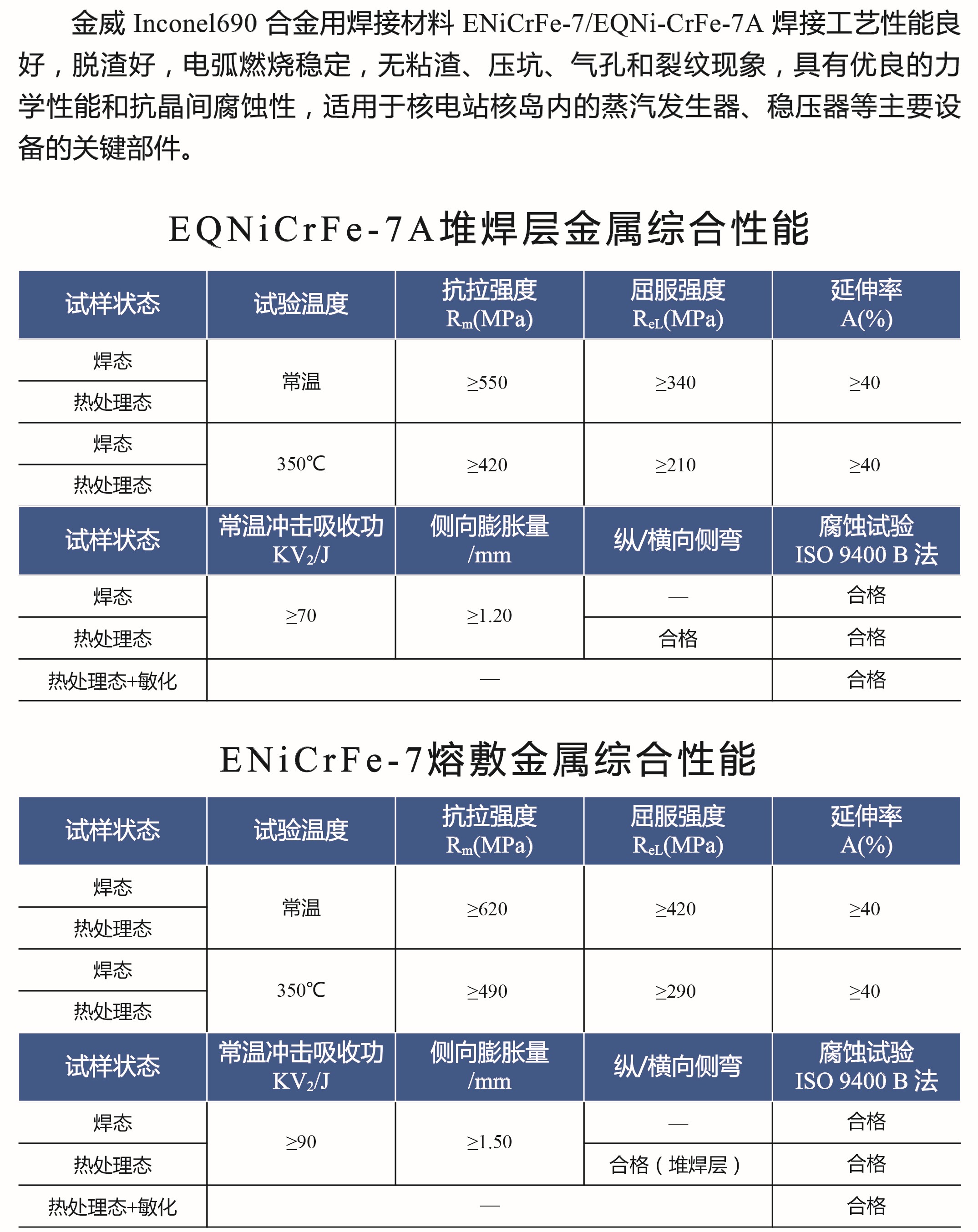 Inconel 690合金用焊材