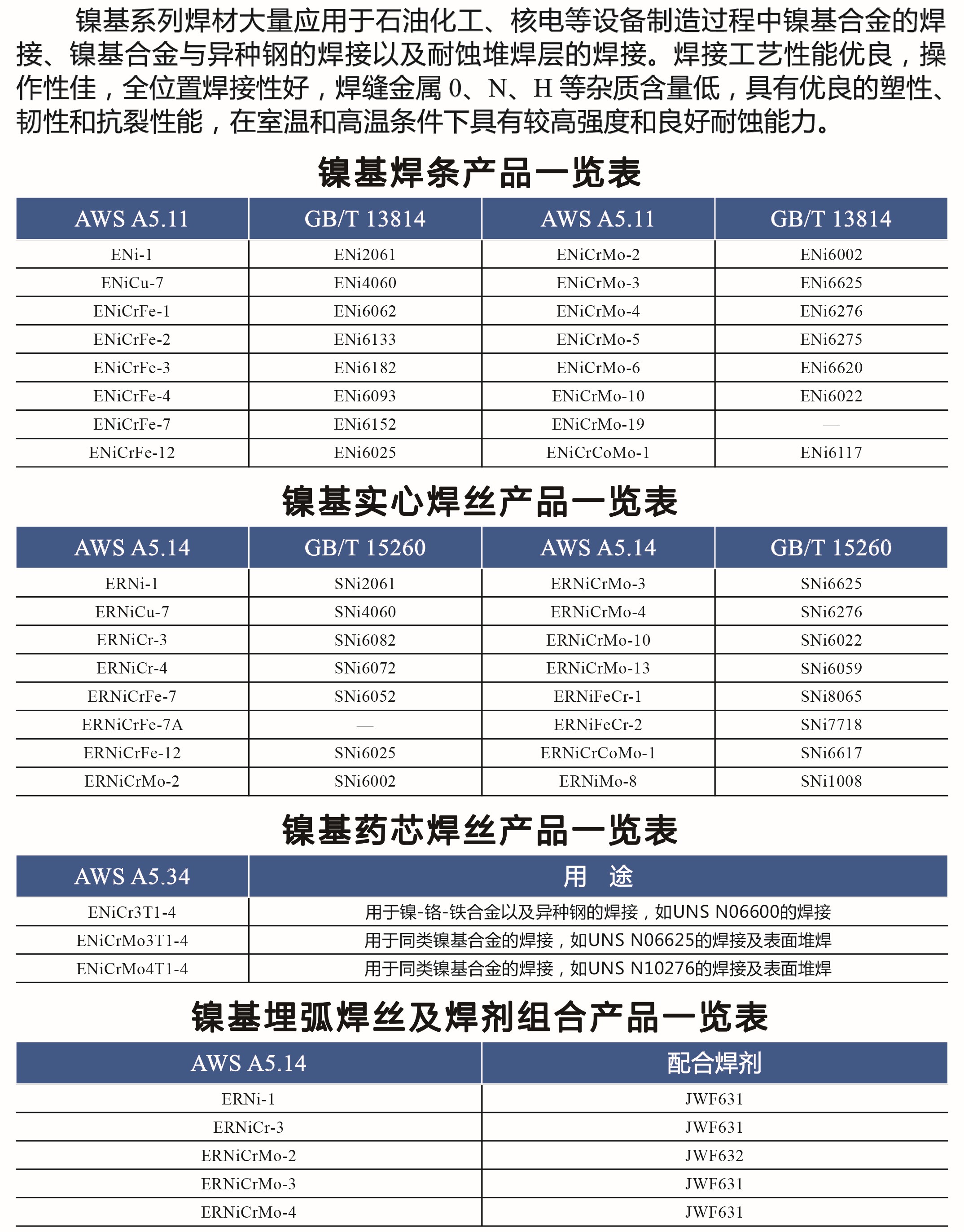 镍基系列焊材